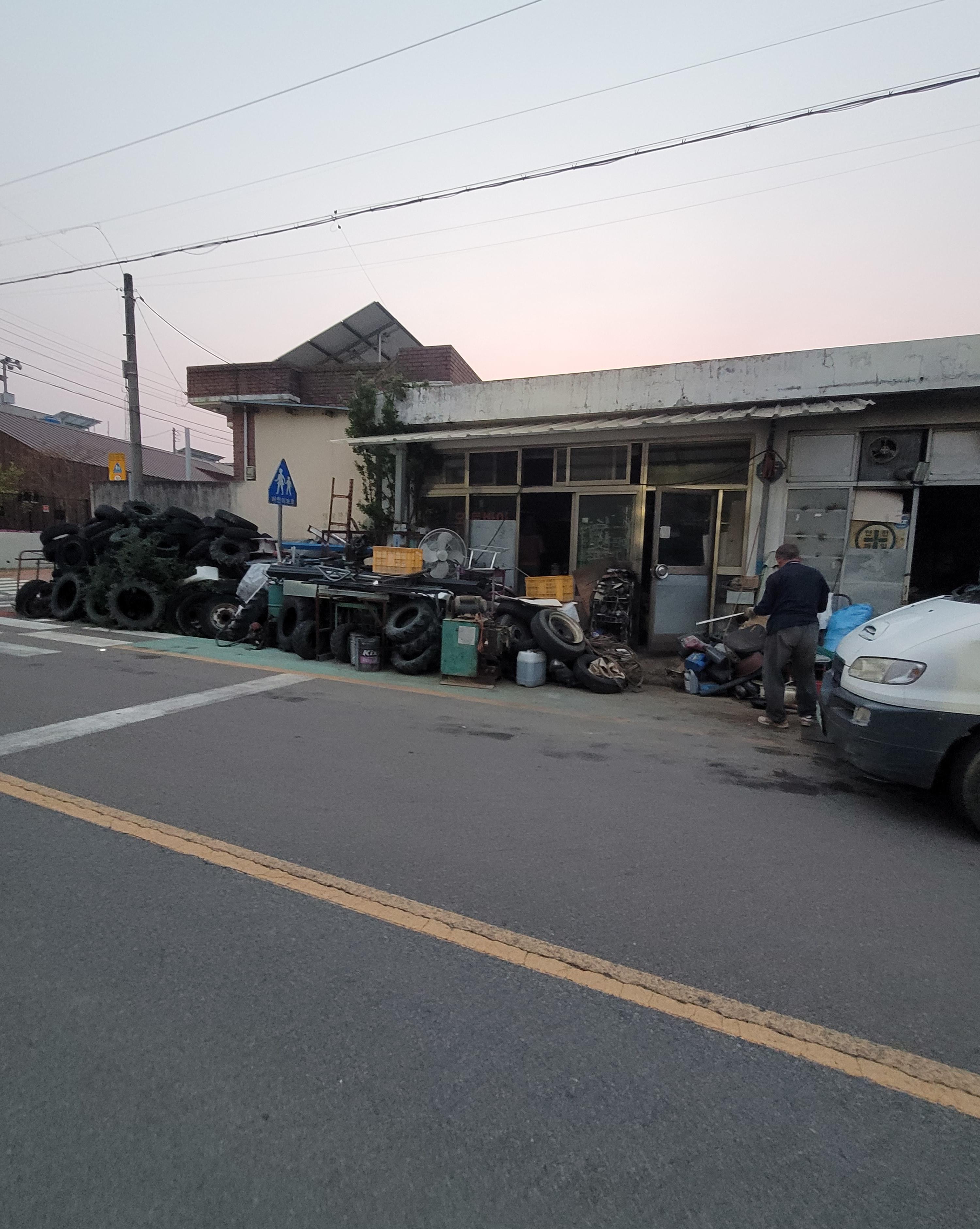 어르신들의 발이 되어드리는 전동차들이 즐비하네요.