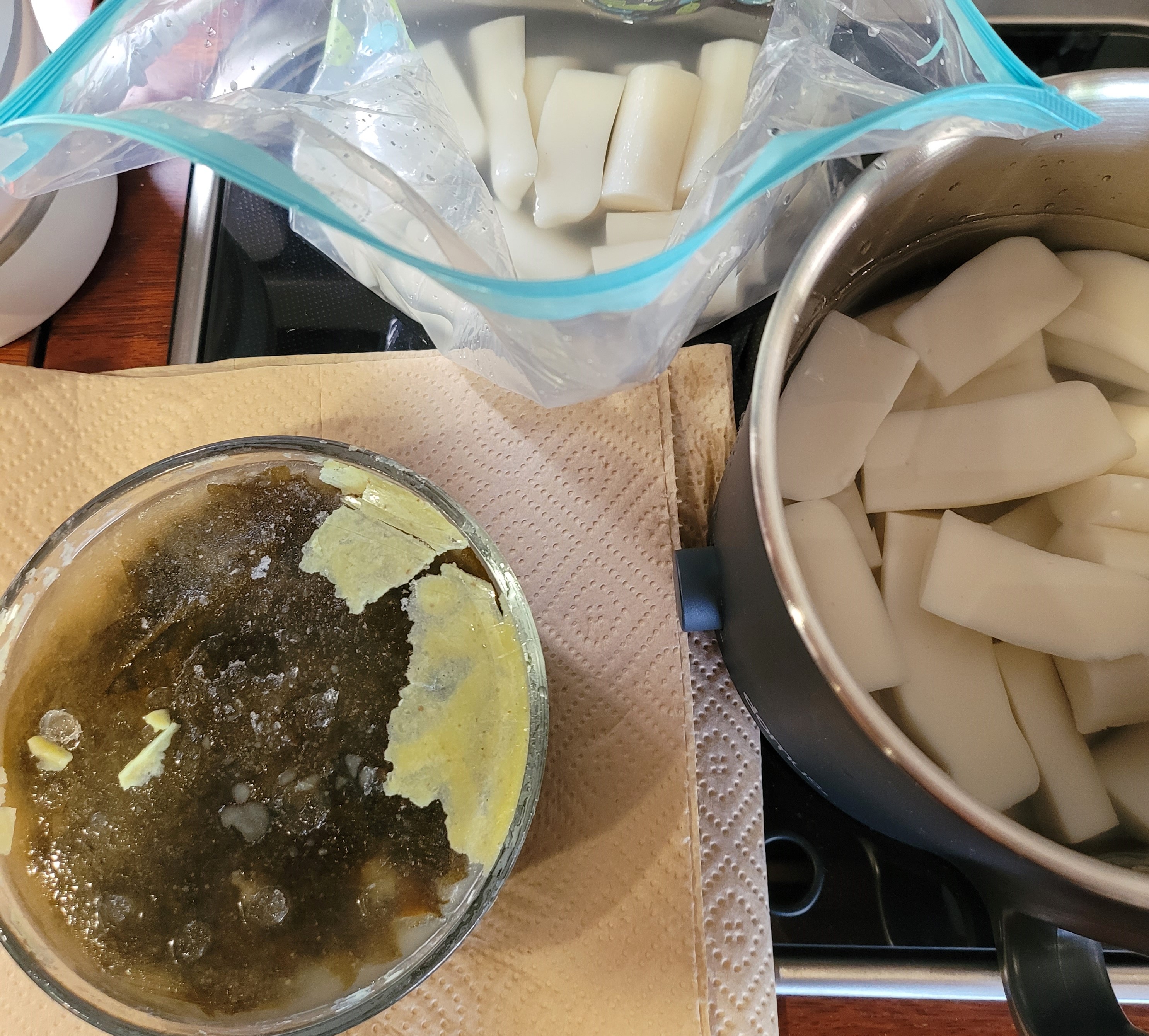 '여차방파제'에서 차박하던 날 구매한 생미역으로 끓인 미역국을 얼려왔어요.